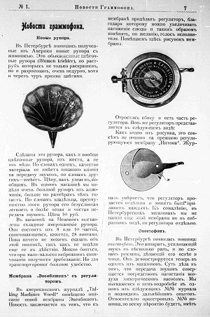 ♦ В Петербурге образовалось Товарищество, цель которого – производство пластинок. Товарищество состоит из П.Ф.Коровина, С.Н.Захарова и электро-техника В.И.Ребикова. В.И.Ребиков обещает выпустить какие-то новые граммофоны, но до сих пор мы не видели даже образцов. Что касается выпуска пластинок, то о нём тоже ничего не слышно.